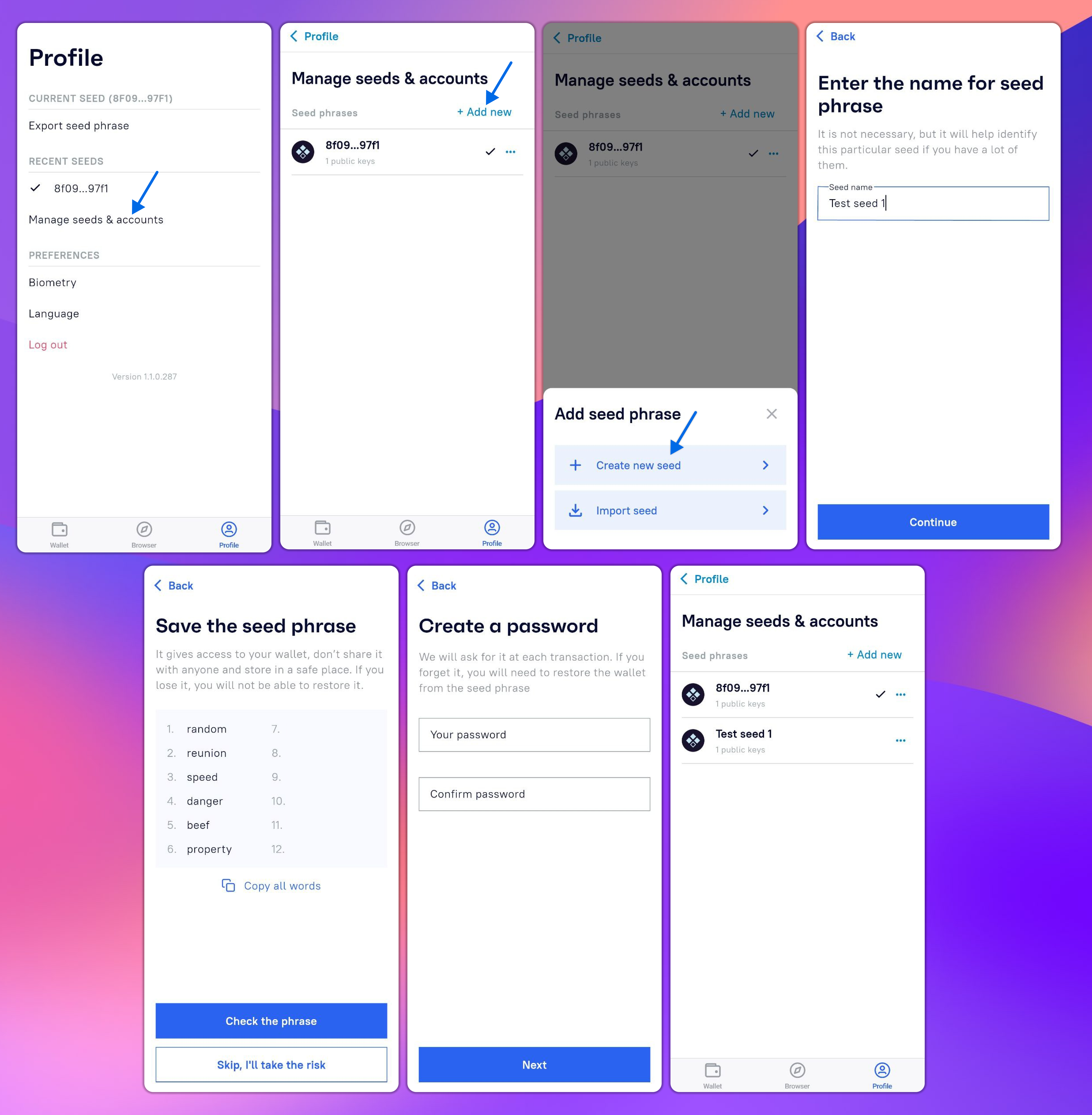 Now you can [switch ](#manage-seed-phrase)between active`seeds`and also [manage](#manage-seed-phrase) them.